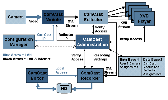 XVD CamCast Enterprise is an end-to-end IP-based audio/video content delivery and distribution solution. Applications include video on demand, broadcasting, distance learning and surveillance.