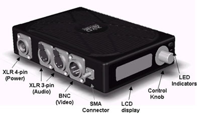 LCD (for bit-rate, frame rate, resolution)Power indicator (LED)Wireless Link indicator (LED) |